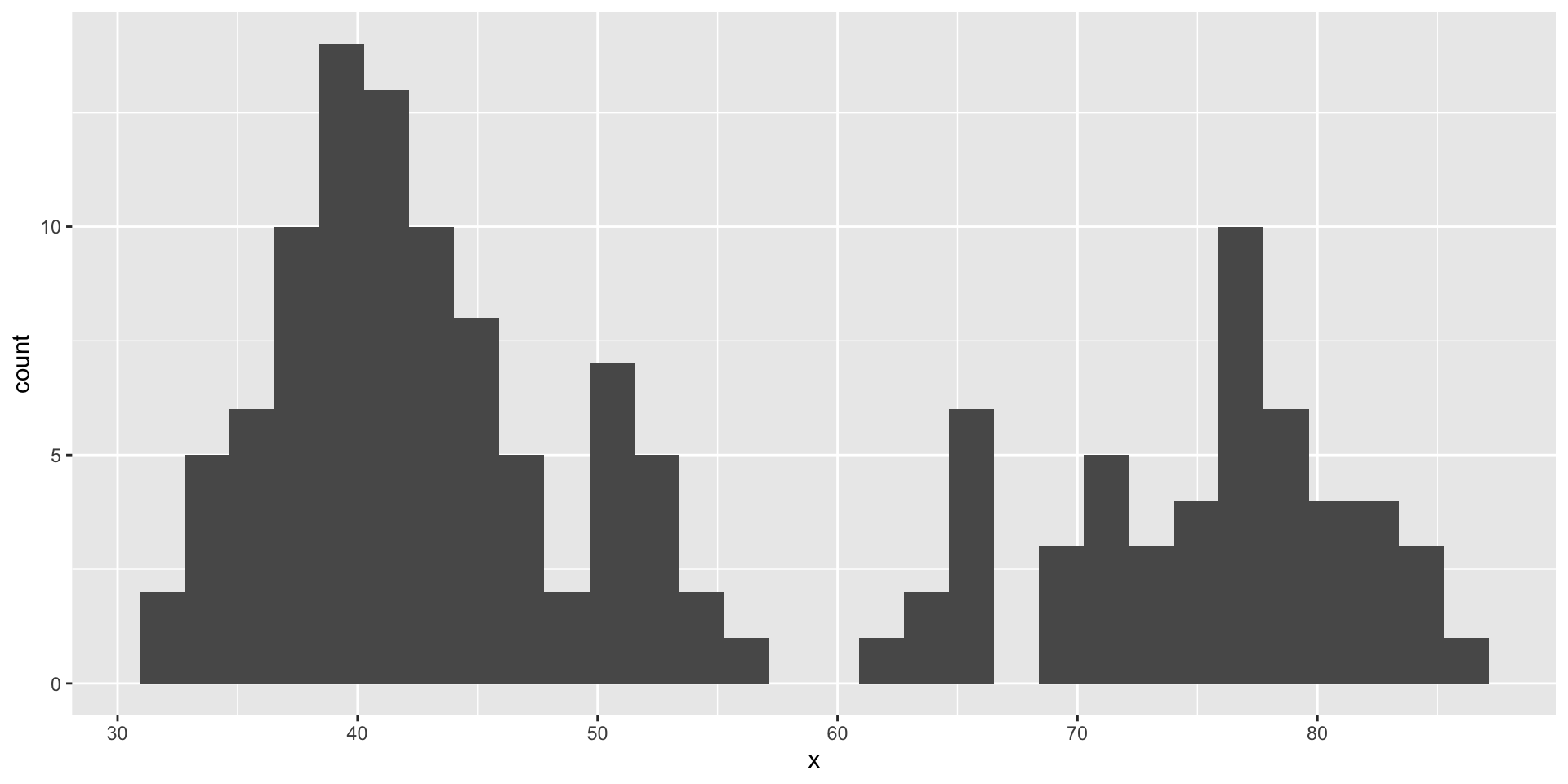 The geom_* in ggplot2 describe the type of plot you want to create. What do you think would create a histogram?
