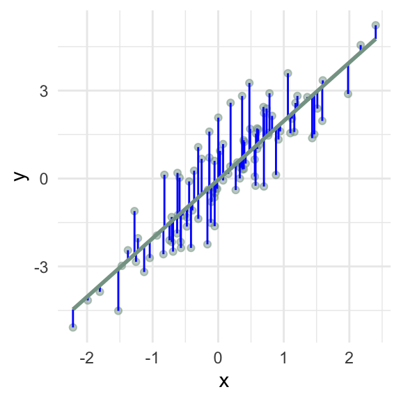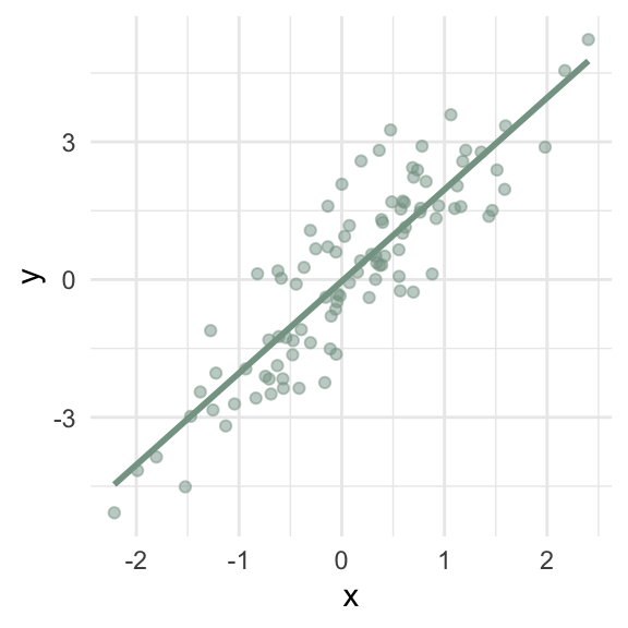 y = 2 * x + x / 2 * rnorm(100, sd = 10))