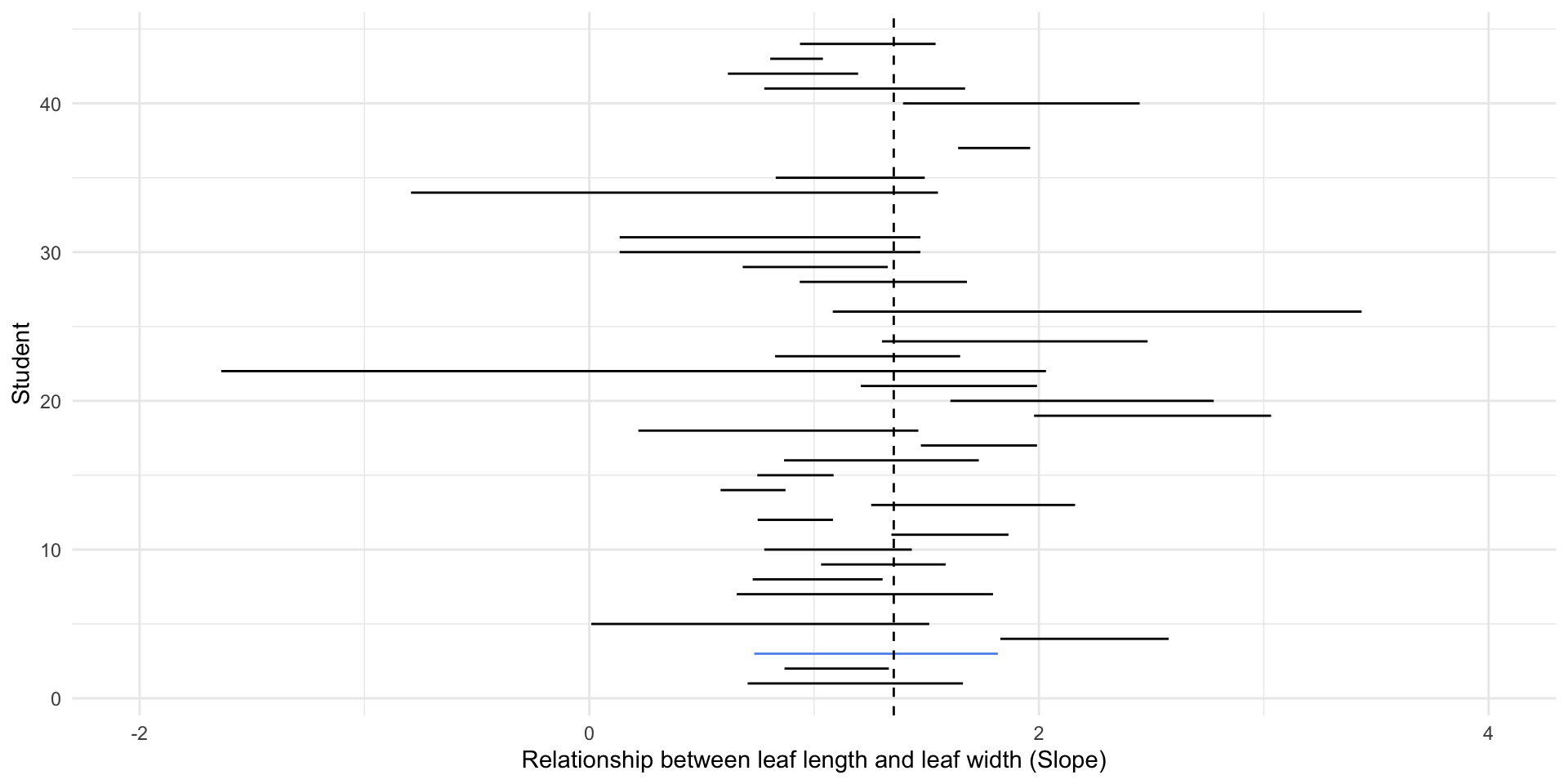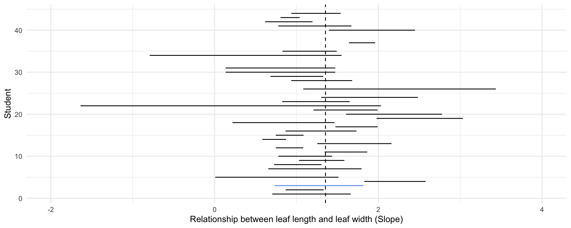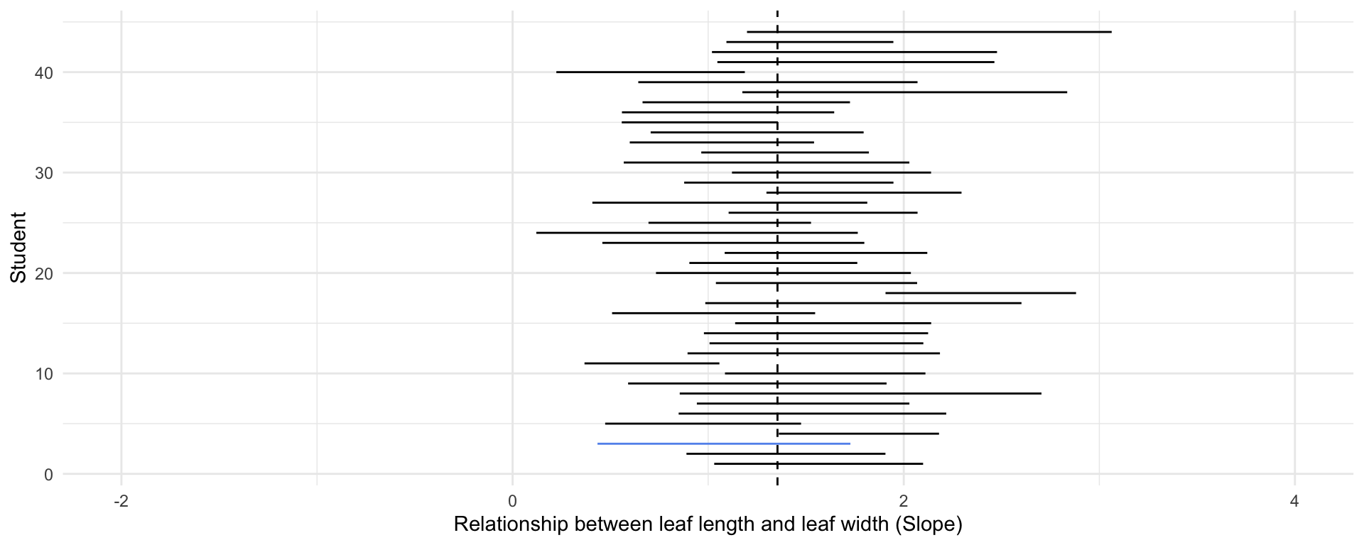 labs(x = "Relationship between leaf length and leaf width (Slope)",