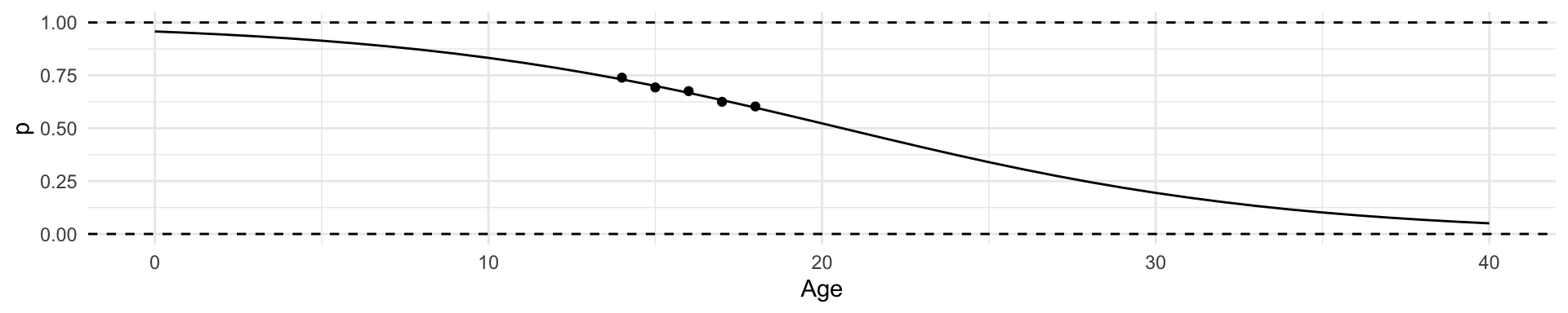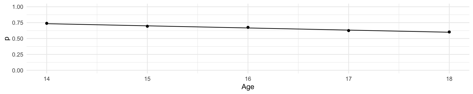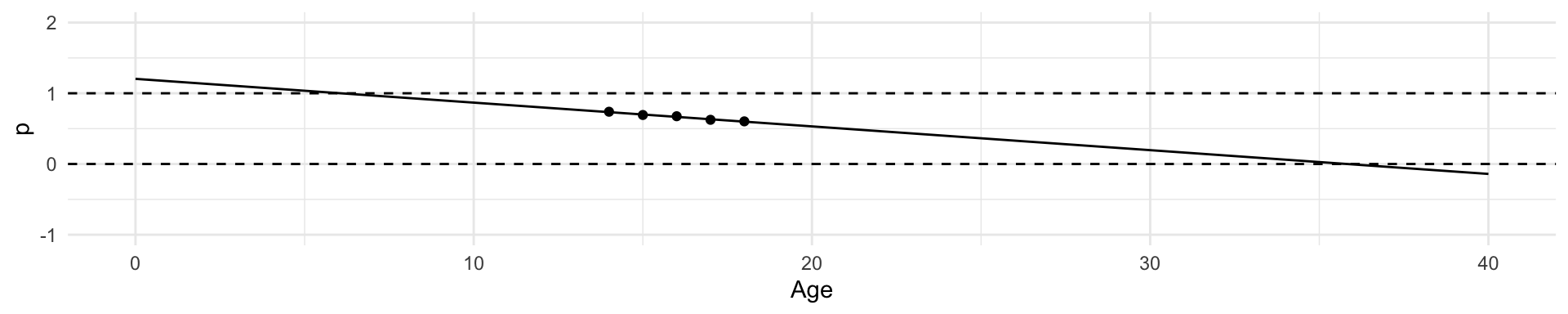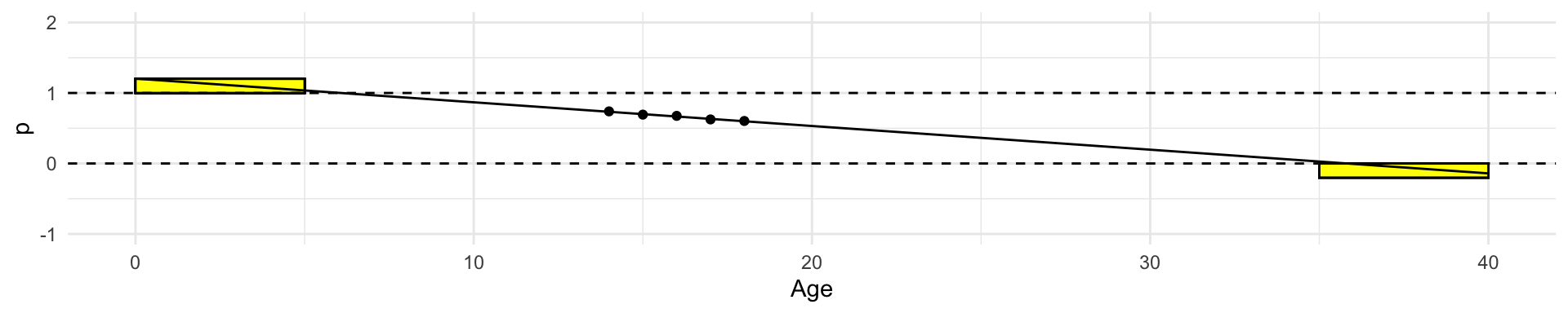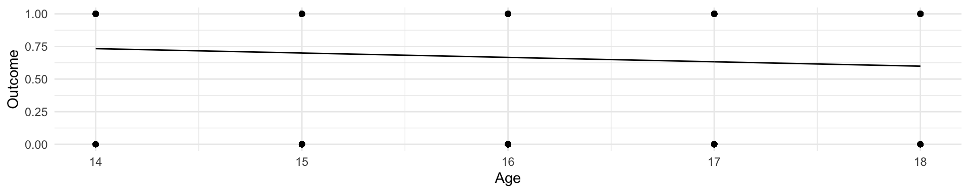 geom_line(data = new_data, aes(x = Age, y = predict(lm(Outcome ~ Age, data = LosingSleep), newdata = new_data))) +